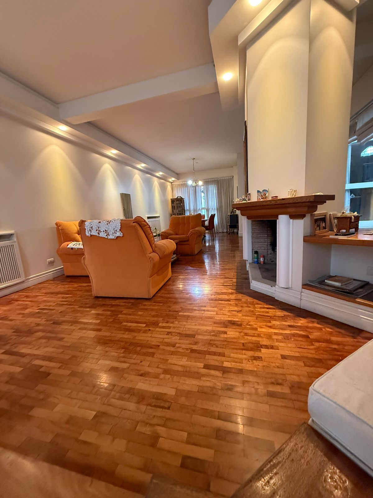 Amplio living-comedor en desnivel con pisos de parquet natural